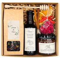 Zestaw prezentowy kosz prezentowy z herbatą, miodem, syropem i czekoladą Mapo Tea