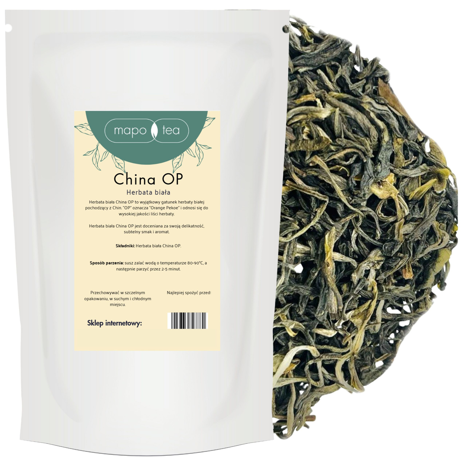Herbata Biała China OP liściasta premium wysoka jakość Orange Pekoe Mapo Tea 50g